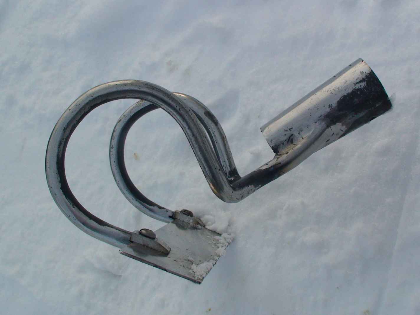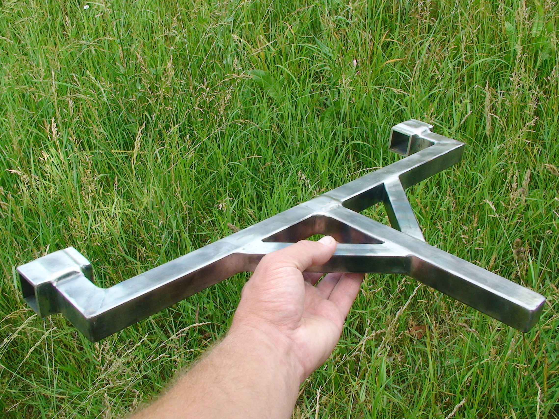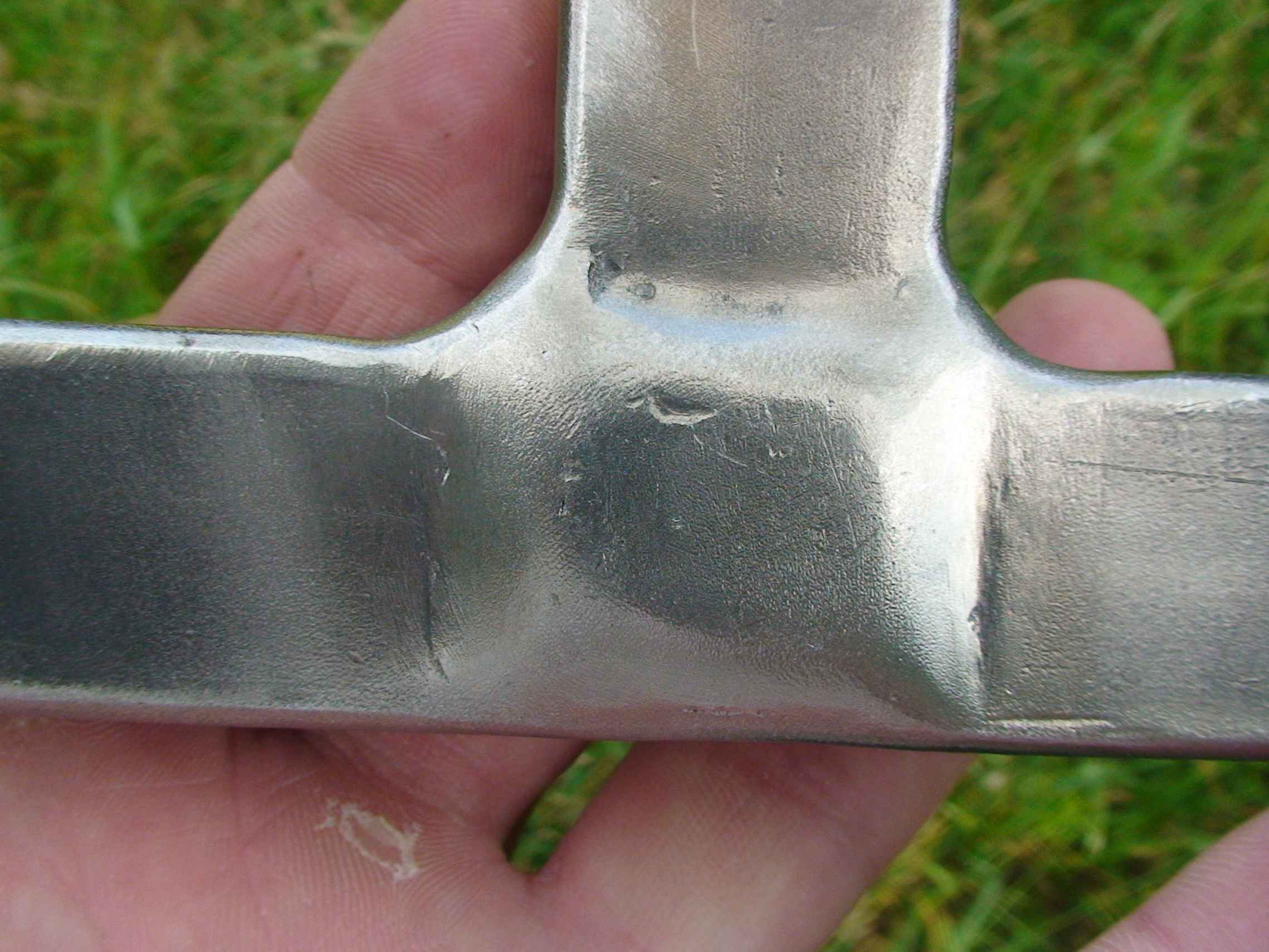 Плоскорез широкий был сварен ещё в 2011-2012. А вот ось из полдюймовой трубы для груза приварена в 2013-ом. Её шов зачищенный щеткой и не обработанный. А остальные швы обработаны болгаркой.